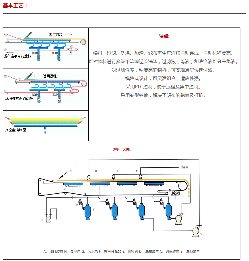 設(shè)備簡(jiǎn)介:PBF移動(dòng)盤式真空過濾機(jī)是一種自動(dòng)化程度較高的過濾設(shè)備,該機(jī)以過濾布或?yàn)V網(wǎng)為介質(zhì),使料漿水平布置于過濾介質(zhì)之上,充分利用料漿重力和真空吸力實(shí)現(xiàn)固液分離。生產(chǎn)過程全自動(dòng)運(yùn)行,但屬于間歇性工作,約為DU系列工作效率的0.8倍,但造價(jià)便宜,因而被諸多工業(yè)部門優(yōu)先采用。可根據(jù)生產(chǎn)需要自由調(diào)整運(yùn)行速度、進(jìn)料量、洗滌水量。該類設(shè)備技術(shù)成熟,運(yùn)行平穩(wěn),廣泛應(yīng)用于電力環(huán)保、礦山、化工、冶金、造紙、食品、制藥及煤炭等行業(yè)。