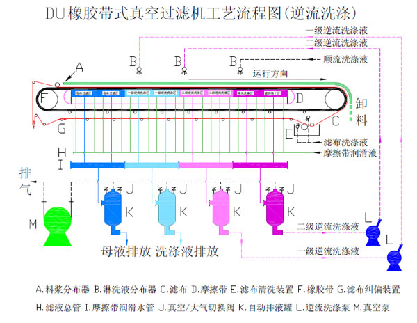 橡膠帶式真空過濾機(jī)是以濾布作為過濾介質(zhì),依靠真空負(fù)壓力實現(xiàn)固液分離的高效分離設(shè)備,該設(shè)備結(jié)構(gòu)簡單,制作和運(yùn)行成本低,易維護(hù)和操作。生產(chǎn)過程全自動運(yùn)行,可根據(jù)生產(chǎn)需要自由調(diào)整運(yùn)行速度、進(jìn)料量、洗滌水量。橡膠帶式真空過濾機(jī)經(jīng)過多年的發(fā)展,技術(shù)已達(dá)到國際先進(jìn)水平,廣泛應(yīng)用于電力環(huán)保、礦山、化工、冶金、造紙、食品、制藥及煤炭等行業(yè)。